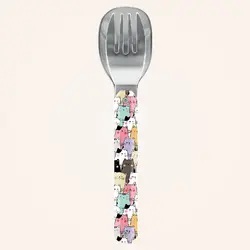 Прибори за хранене от мартензитна неръждаема стомана 2CR14, полирано огледално покритие. Състои се от лъжица и вилица с 4 зъба. Декорирана прозрачна полимерна дръжка. Магнитно сглобяване. Доставя се с твърд калъф за носене от полипропилен (PP). Подходящи за съдомиялна машина.