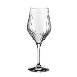 Стилен комплект от 6 чаши за вино, произведени от италианската фирма RCR Crystal. Размери: Ø 9.6 см, h = 23.8 см, вместимост: 550 мл. Подходящи за почистване в съдомиялна машина. Подарете си финес и красота на масата с италианско качество и изящен дизайн.