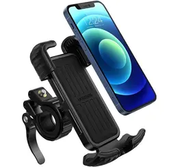 • Надеждно Закрепване: Силиконови ремъци и регулируеми клампи държат телефона здраво, дори на неравни пътища.